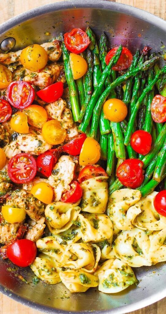 #4) Healthy One Pan Pesto Chicken With Tortellini & Vegetables