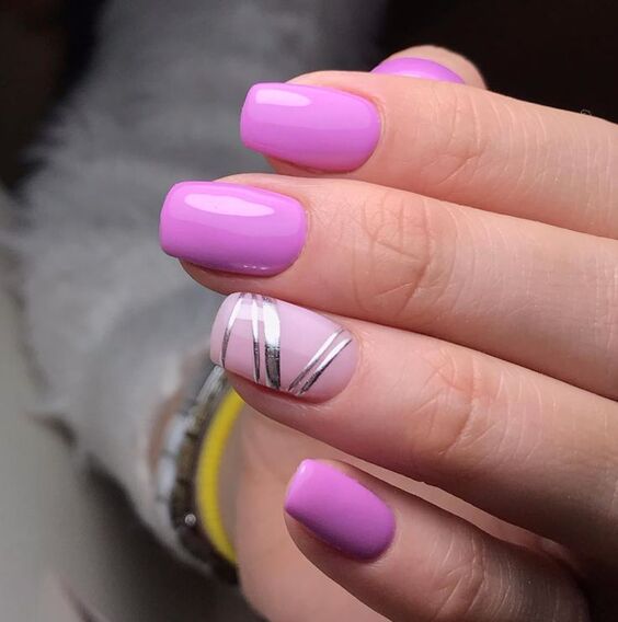 #9) Vibrant Fuchsia Spring Nails With Chrome Accent