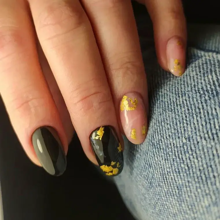 #3) Midnight Gold Thanksgiving Nail Design Idea