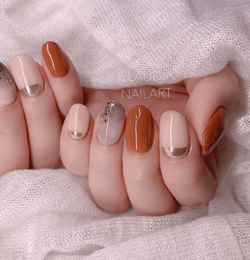 This gorgeous modern swirl and neutral rich brown base coat are perfect for Thanksgiving or fall.