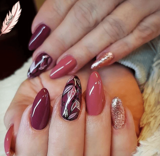 #16) Raspberry Leaves Thanksgiving Nail Design