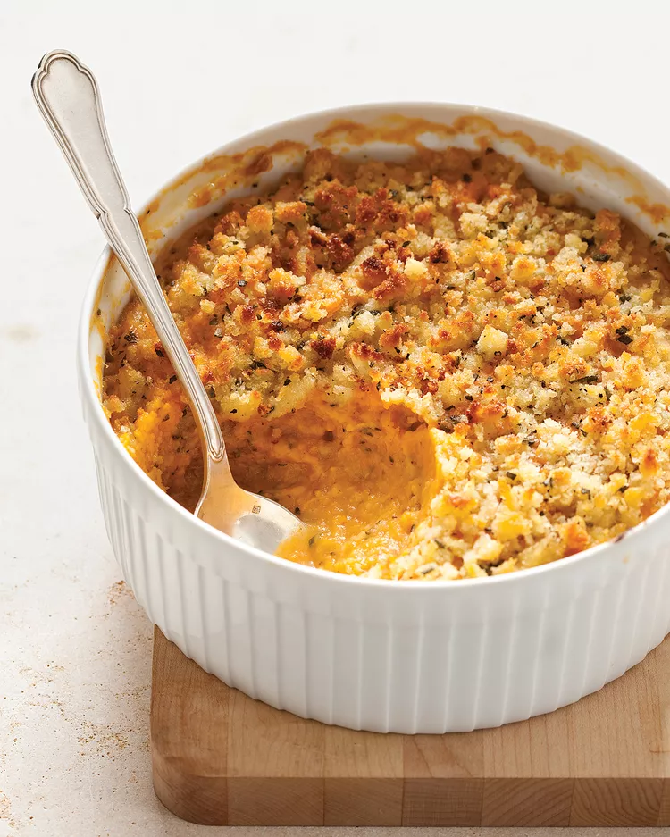 This spin on classic sweet potato casserole has a savory flare with buttery sage infusions.
