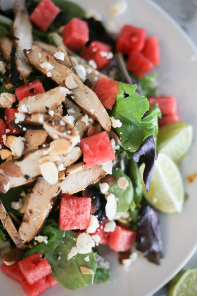 Watermelon Feta Chicken Salad with Lime Vinaigrette